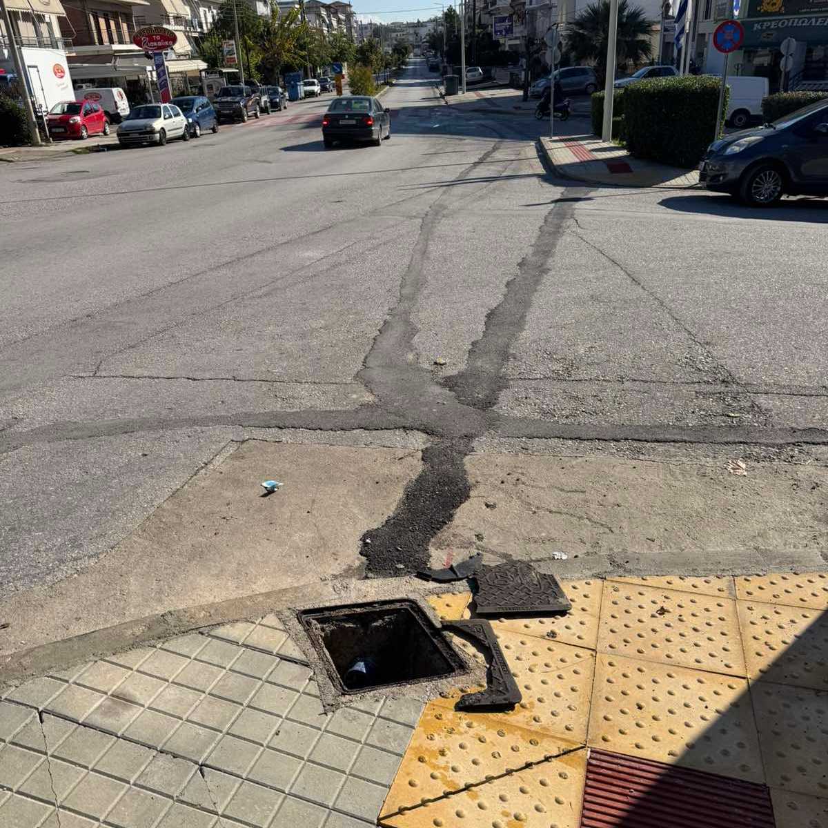 Λαμία: Τρύπα - παγίδα σε πεζοδρόμιο - Υπάρχει κάποιος υπεύθυνος;