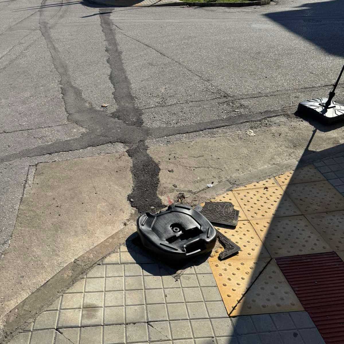 Προφανώς κι αυτό δεν είναι λύση και άμεσα κάποιος από το Δήμο πρέπει να αναλάβει να προστατεύσει τους πολίτες του, αποκαθιστώντας το πρόβλημα ή βάζοντας κανονική σήμανση. Μετά ας αναζητήσει όποιον υποχρεούται να την αποκαταστήσει και να πληρώσει και το ανάλογο τίμημα.