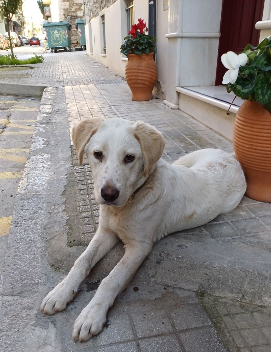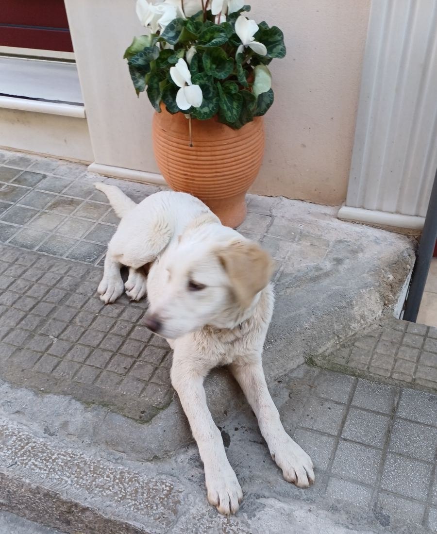 Είναι αρσενικός, 4-6 μηνών, φορά περιλαίμιο, πολύ φιλικός και παιχνιδιάρης.