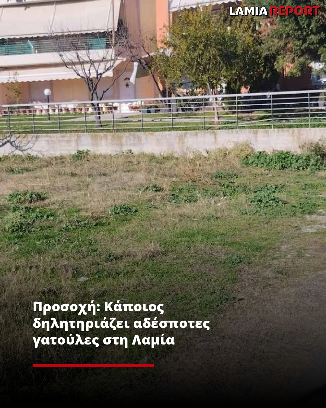«Σήμερα βρέθηκαν σε σημείο οικοπέδου της γειτονιάς 3 αδέσποτες γάτες νεκρές, ενώ την προηγούμενη εβδομάδα 2 αδέσποτες γάτες.
