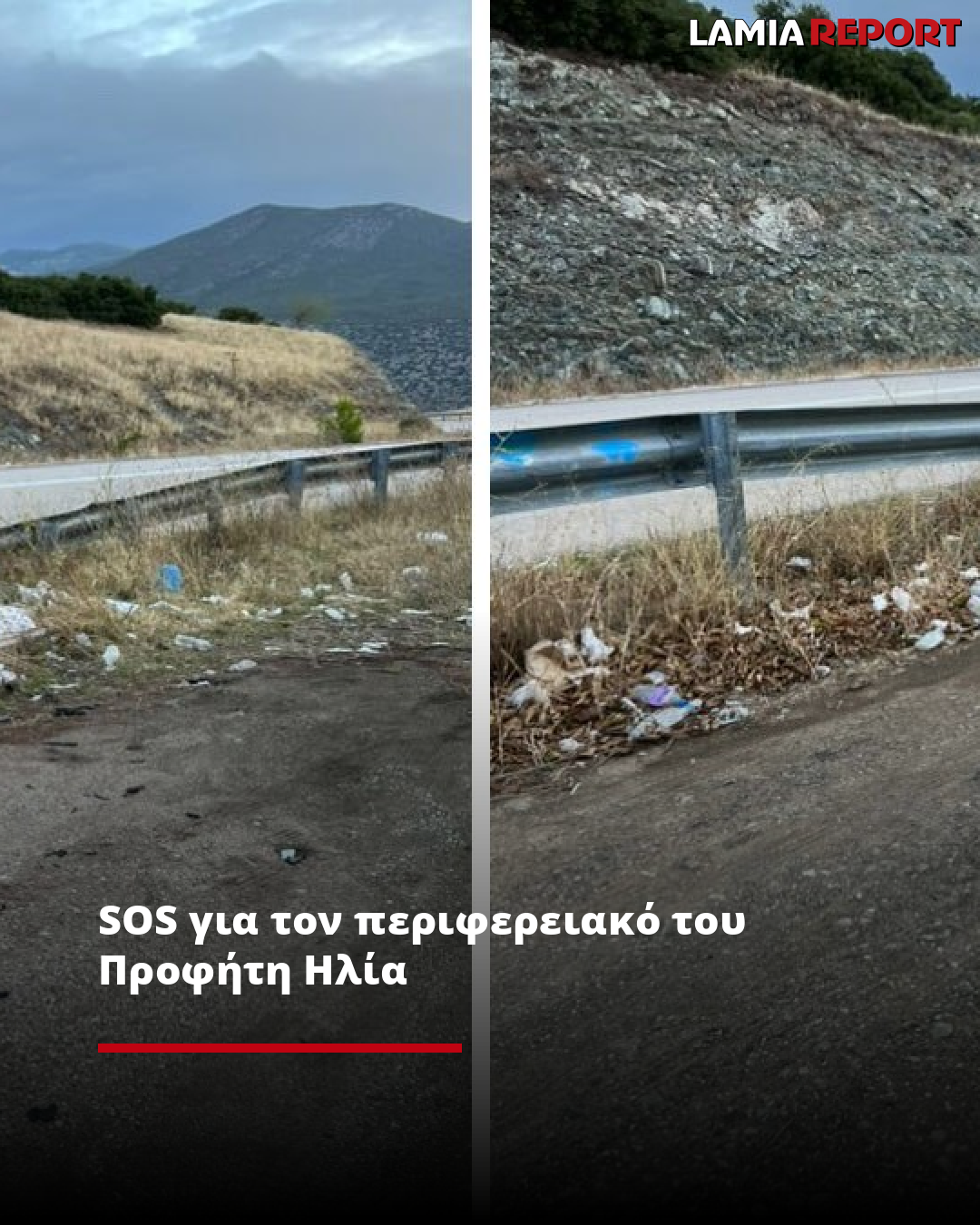 Όλο το μήκος του περιφερειακού έχει μετατραπεί σε ένα εμπριμέ τοπίο με κάθε λογής ανθρώπινα απόβλητα.