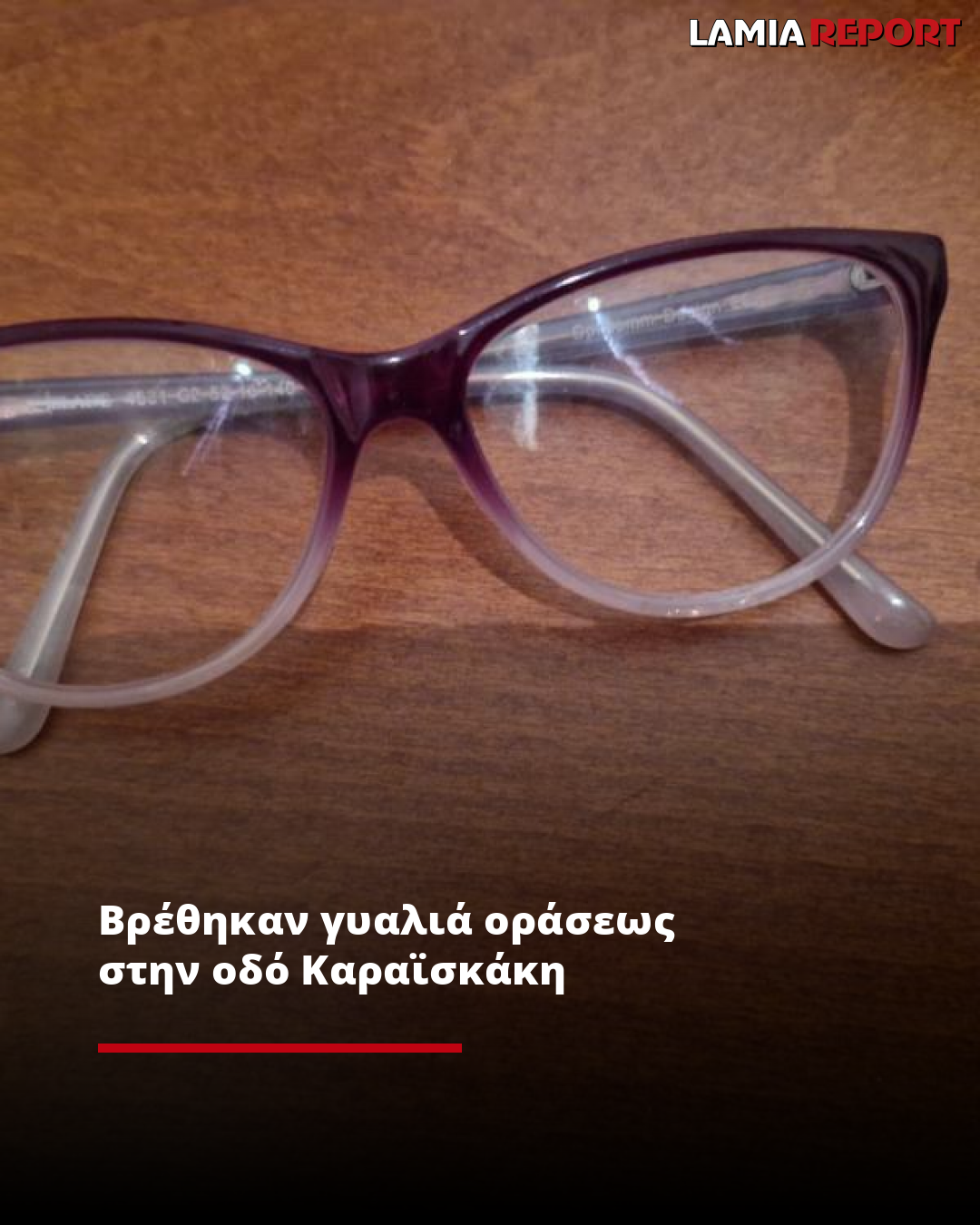 Τα γυαλιά οράσεως της φωτογραφίας βρέθηκαν στην οδό Καραϊσκάκη, έξω από το σούπερ μάρκετ "Καλαθάς".
