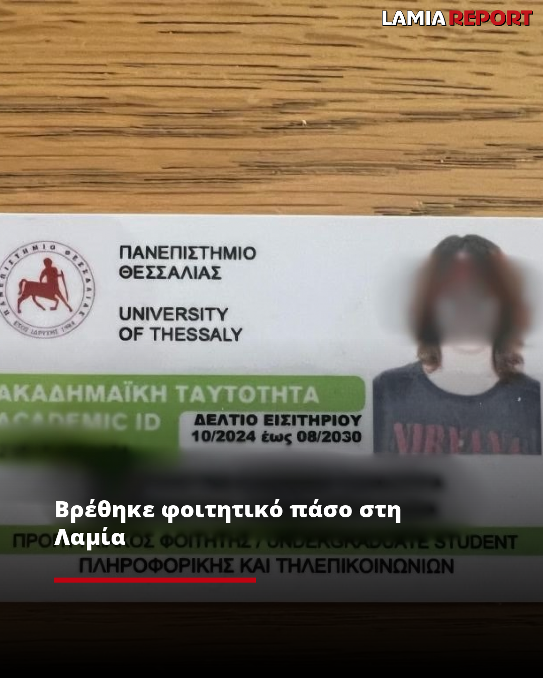 Βρέθηκε φοιτητικό πάσο στη Λαμία