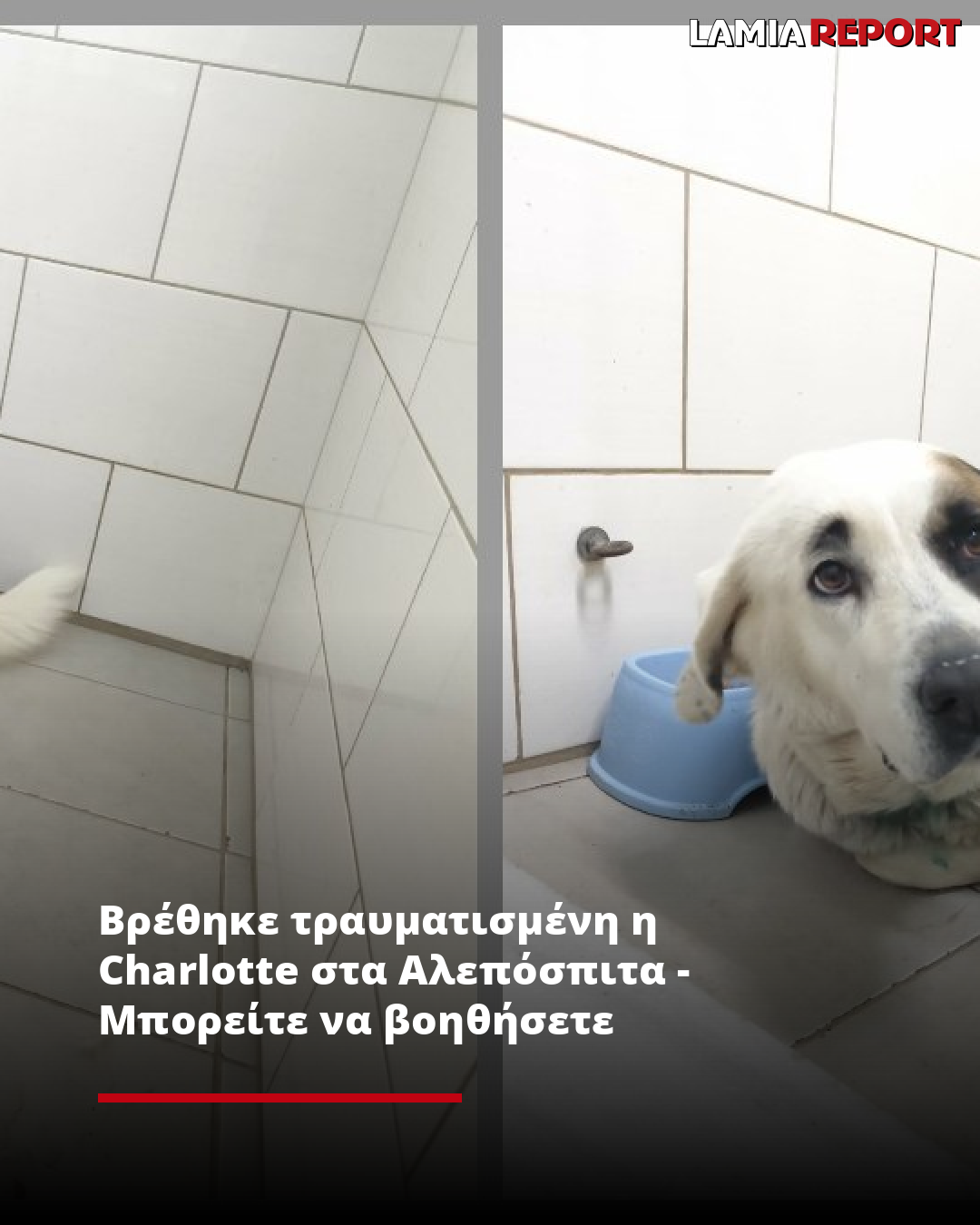 Η Charlotte βρέθηκε από συμπολίτη μας στα Αλεπόσπιτα, του Δήμου Λαμιέων, με αλυσίδα στο λαιμό, η οποία της είχε προκαλέσει πληγή, καθώς ήταν πολύ σφιχτά δεμένη.
