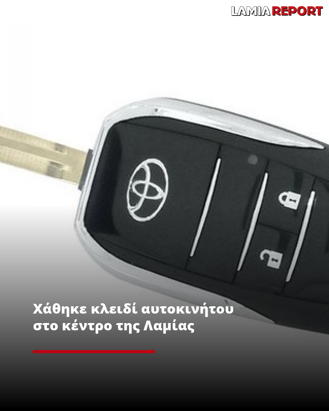 Το κλειδί αυτοκινήτου μάρκας Toyota, χάθηκε την Τρίτη 2/12/25, στο κέντρο της Λαμίας.