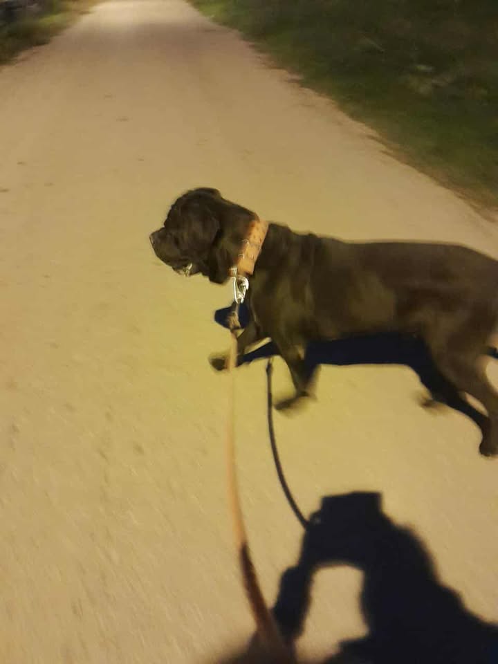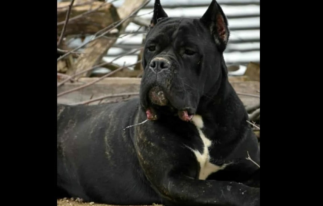 Το σκυλάκι είναι ράτσας Κάνε Κόρσο, είναι μαύρος με λευκό σημαδάκι κάτω από το στόμα, που σχηματίζει σταυρουδάκι.