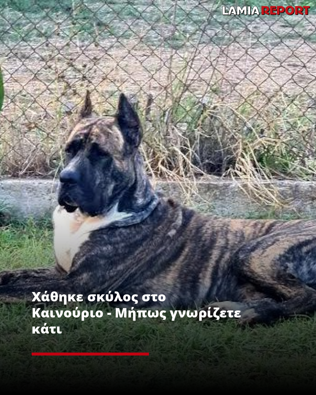 Ο σκύλος της φωτογραφίας είναι ράτσας Cane Corso και χάθηκε από το Καινούριο, κοντά στα Καμένα Βούρλα.