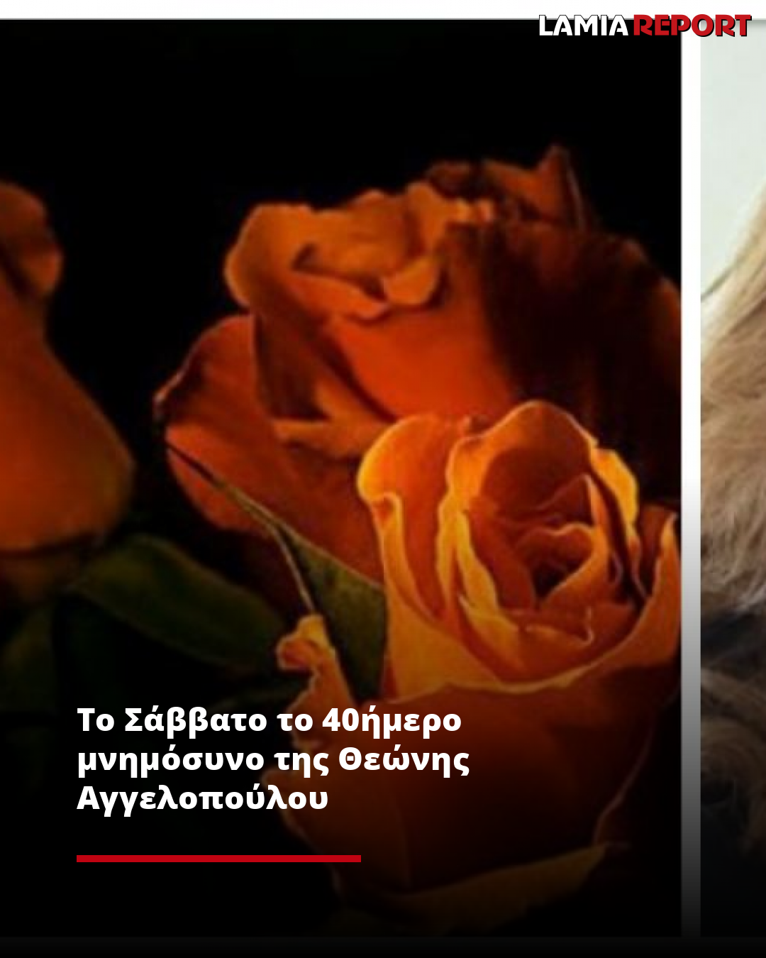 «Το Σάββατο 21 Σεπτεμβρίου 2024, στις 10:30' το πρωί, θα γίνει το 40ήμερο μνημόσυνο της Θεώνης Αγγελοπούλου, Διευθύντριας της Οδοντιατρικής Κλινικής του Γενικού Νοσοκομείου Λαμίας, στον Ιερό Ναό Παναγίας Ξηριωτίσσης Λαμίας.