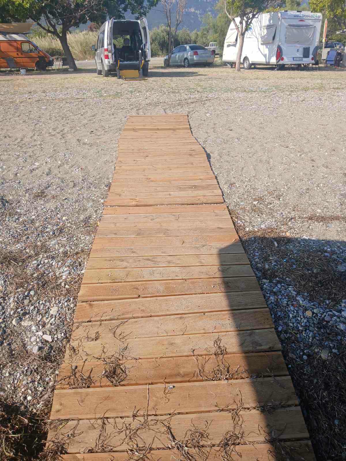 Το πάρκινγκ είναι για όλα τα αναπηρικά αυτοκίνητα. Επίσης με την βούληση και δωρεά του κυρίου Στάθη Ζαρκάδα (Οικοδομικά Υλικά και Εργαλεία), στον Άγιο Κωνσταντίνο, σε συνεργασία με τον Αντιδήμαρχο, μου έφτιαξε μια ράμπα στην παραλία του Καλάμου και με διευκόλυνε ακόμη περισσότερο στην πρόσβαση προς αυτή».