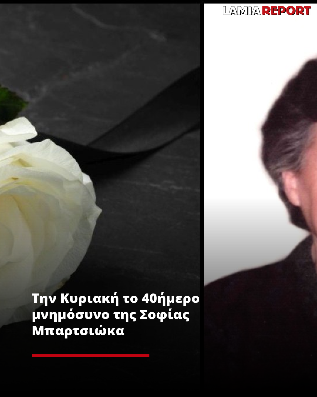 «Την Κυριακή 12 Οκτωβρίου 2025, στις 10:00' το πρωί, στην εκκλησία της Παναγίας Ξηριώτισσας στη Λαμία, θα τελεσθεί η 40ήμερη Επιμνημόσυνη Δέηση για τη Σοφία Μπαρτσιώκα του Παναγιώτη, το γένος Ευθυμίου Ζάρα.»