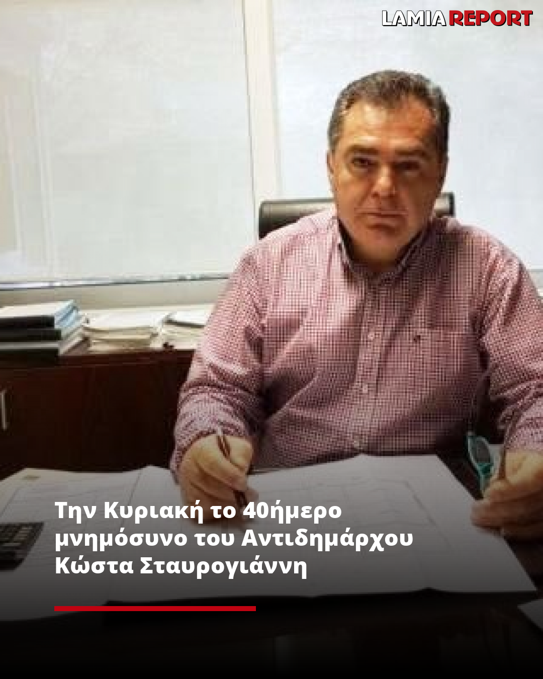 «Την Κυριακή 27 Ιουλίου 2025, στις 09:00' το πρωί, θα τελεστεί το 40ήμερο μνημόσυνο του Αντιδημάρχου Λαμιέων, Κώστα Σταυρογιάννη, στον Ι.Ν Αγίου Αθανασίου στα Γαλανέικα.