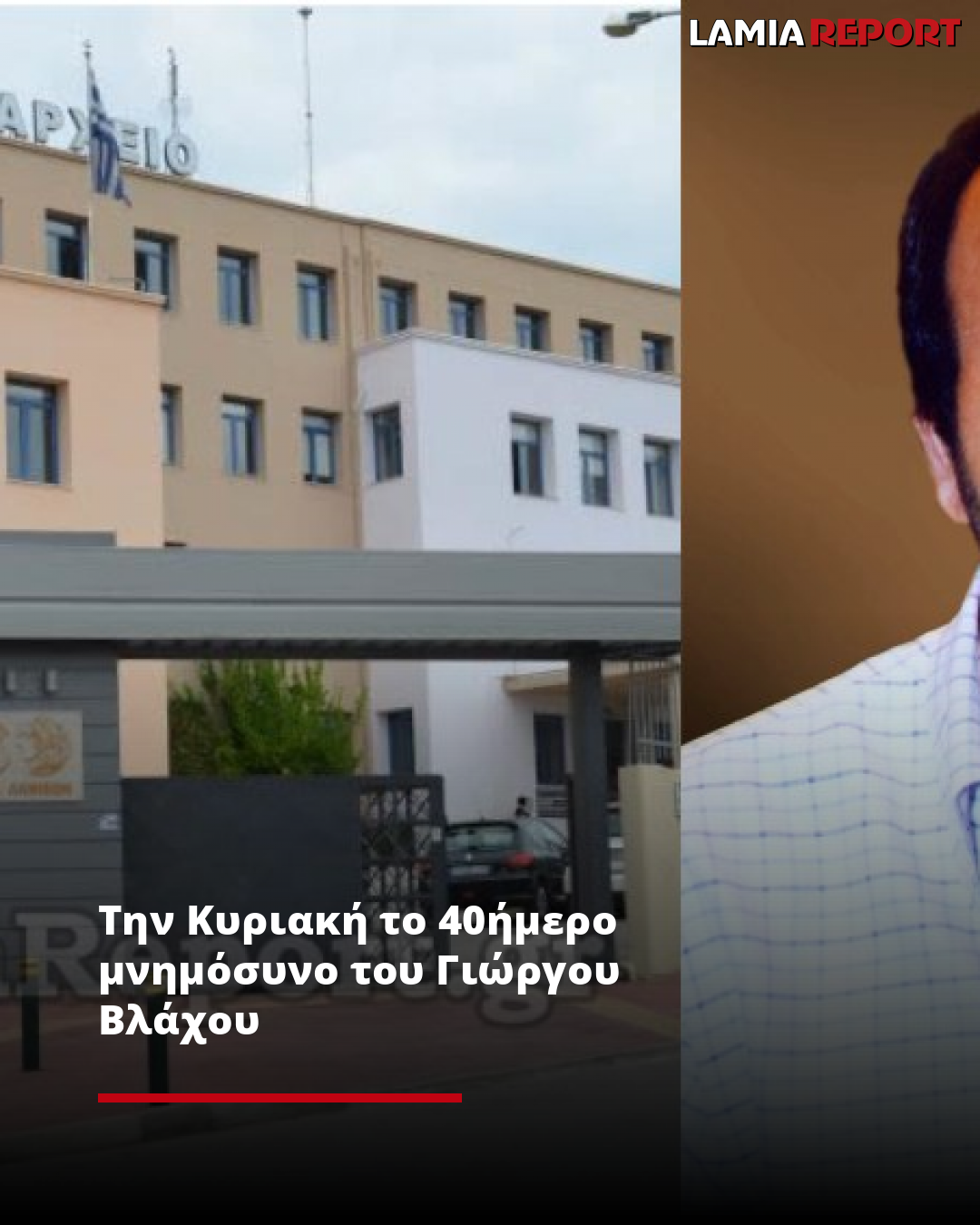 «Την Κυριακή 11 Ιανουαρίου 2026 στις 09:30' το πρωί, θα τελεστεί το 40ήμερο μνημόσυνο του επί πολλών ετών υπαλλήλου του Δήμου Λαμιέων Γιώργου Βλάχου, στον Ιερό Ναό Αγίας Παρασκευής, στην κοινότητα της Αγίας Παρασκευής Λαμίας.