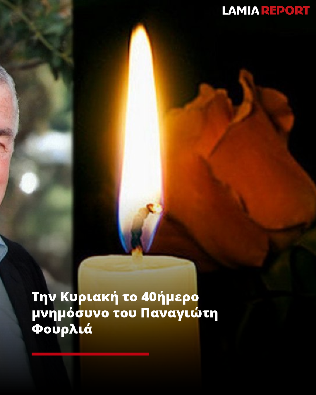 «Την Κυριακή 1η Ιουνίου 2025, στις 09:30' το πρωί, θα τελεστεί το 40ήμερο μνημόσυνο του Παναγιώτη Κ. Φουρλιά, στον Ιερό Ναό Αγίου Λουκά Λαμίας.