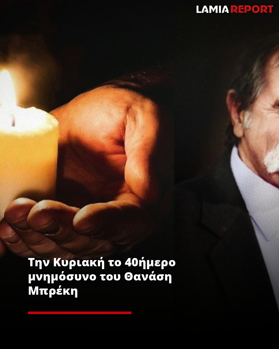 «Την Κυριακή 20 Οκτωβρίου 2024, στις 9:30' το πρωί, θα τελεσθεί το 40ήμερο μνημόσυνο εις μνήμην του Αθανασίου Μπρέκη, στον Ιερό Ναό Αγίου Κοσμά του Αιτωλού στις Εργατικές Κατοικίες Ν. Μαγνησίας Λαμίας.