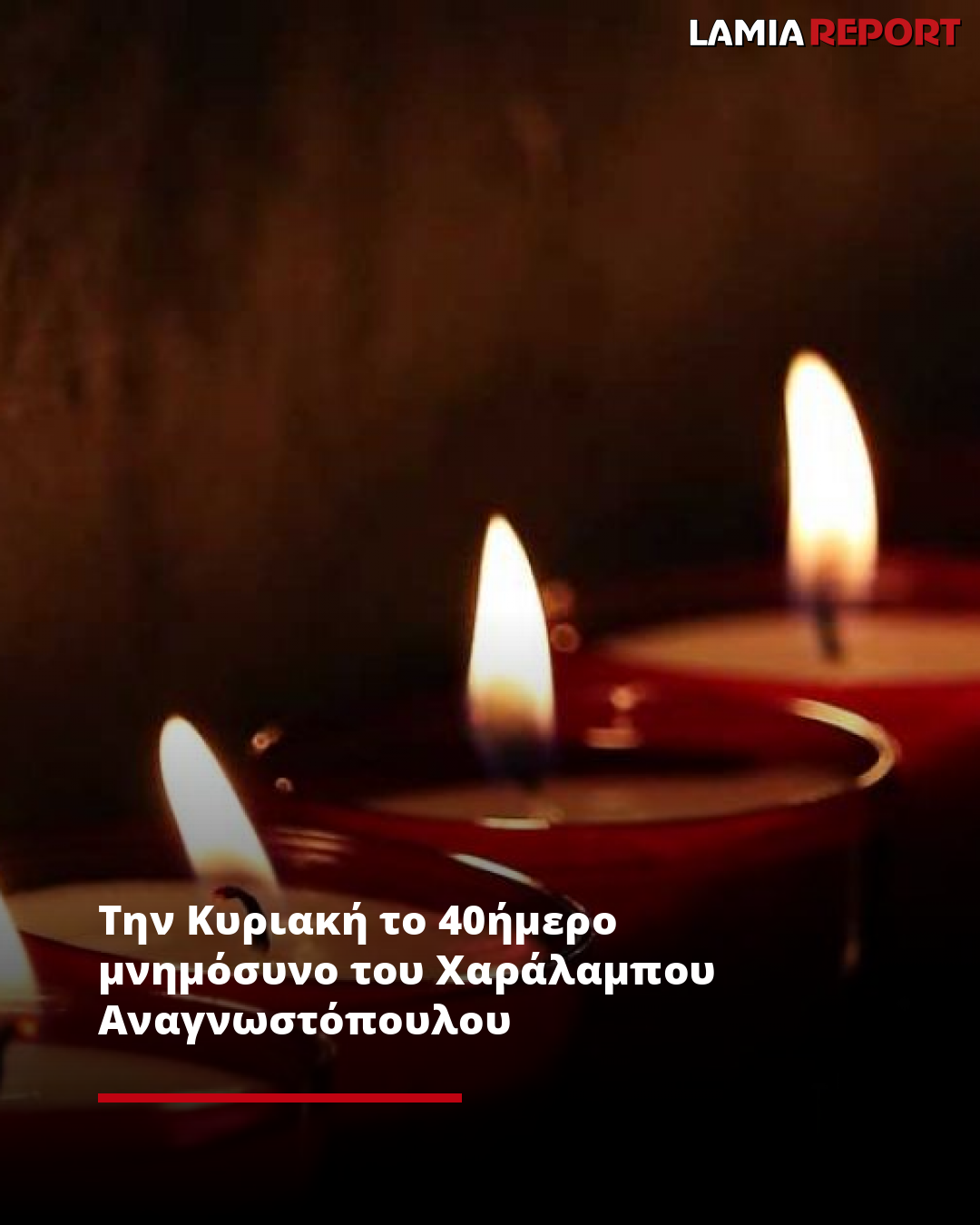 Την Κυριακή 22 Δεκεμβρίου 2024 στις 09:30' το πρωί, θα τελεστεί το 40ήμερο μνημόσυνο του Χαράλαμπου Αναγνωστόπουλου, στον Ιερό Ναό Αγίου Λουκά Λαμίας.