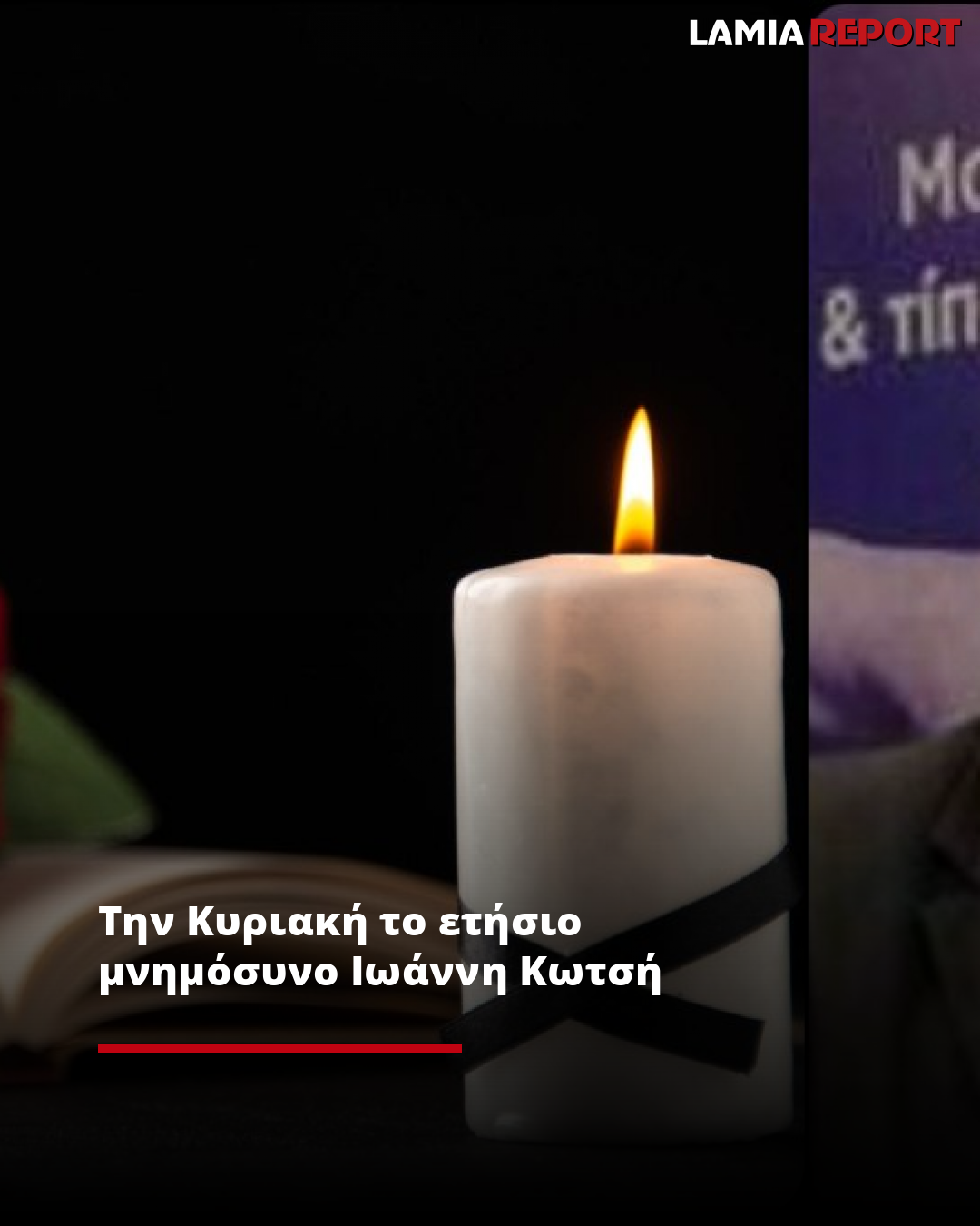 «Την Κυριακή 22 Ιουνίου 2025, στις 11:00' το πρωί, θα τελεστεί το ετήσιο μνημόσυνο του Ιωάννη Κωτσή , στην Ξηριώτισσα Λαμίας.