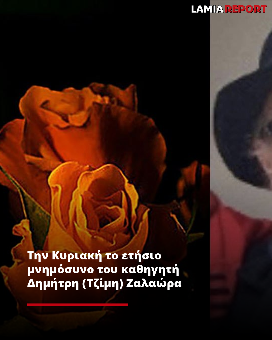 «Την Κυριακή 15 Φεβρουαρίου 2026, στις 9:30' το πρωί, θα τελεστεί το ετήσιο μνημόσυνο του καθηγητή Δημήτρη (Τζίμη) Ζαλαώρα, στη Μητρόπολη Λαμίας.