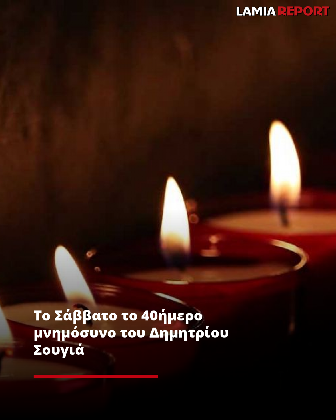 «Το Σάββατο 4 Οκτωβρίου 2025, στις 09:00' το πρωί, θα τελεστεί το 40ήμερο μνημόσυνο του Δημητρίου Σουγιά, στον Ι.Ν. Ιωάννου του Προδρόμου στο Ορφανοτροφείο Θηλέων Λαμίας.