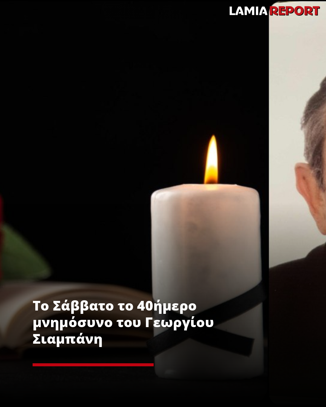 «Το Σάββατο 21 Ιουνίου 2025, στις 09:00' το πρωί, θα τελεστεί το 40ήμερο μνημόσυνο του Γεωργίου Σιαμπάνη, στον Ιερό Ναό Πέτρου & Παύλου στο Παγκράτι Λαμίας.