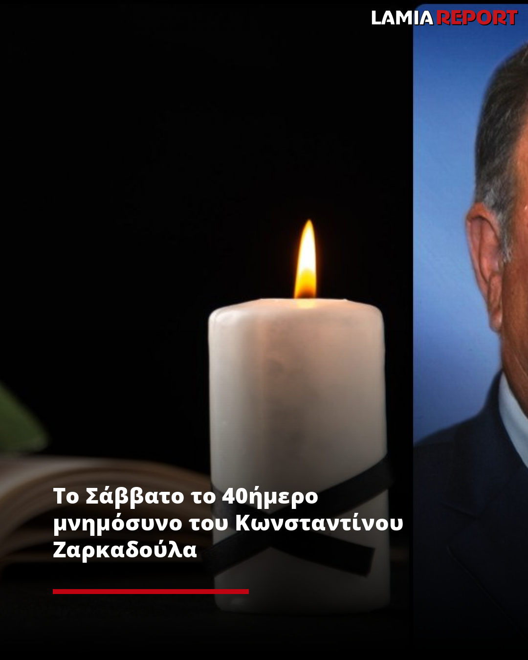«Το Σάββατο 7 Ιουνίου 2025, στις 09:00' το πρωί, θα τελεστεί το 40ήμερο μνημόσυνο του Κωνσταντίνου Ζαρκαδούλα, στον Ιερό Ναό Αγίου Κωνσταντίνου & Ελένης στα Λουτρά Υπάτης.