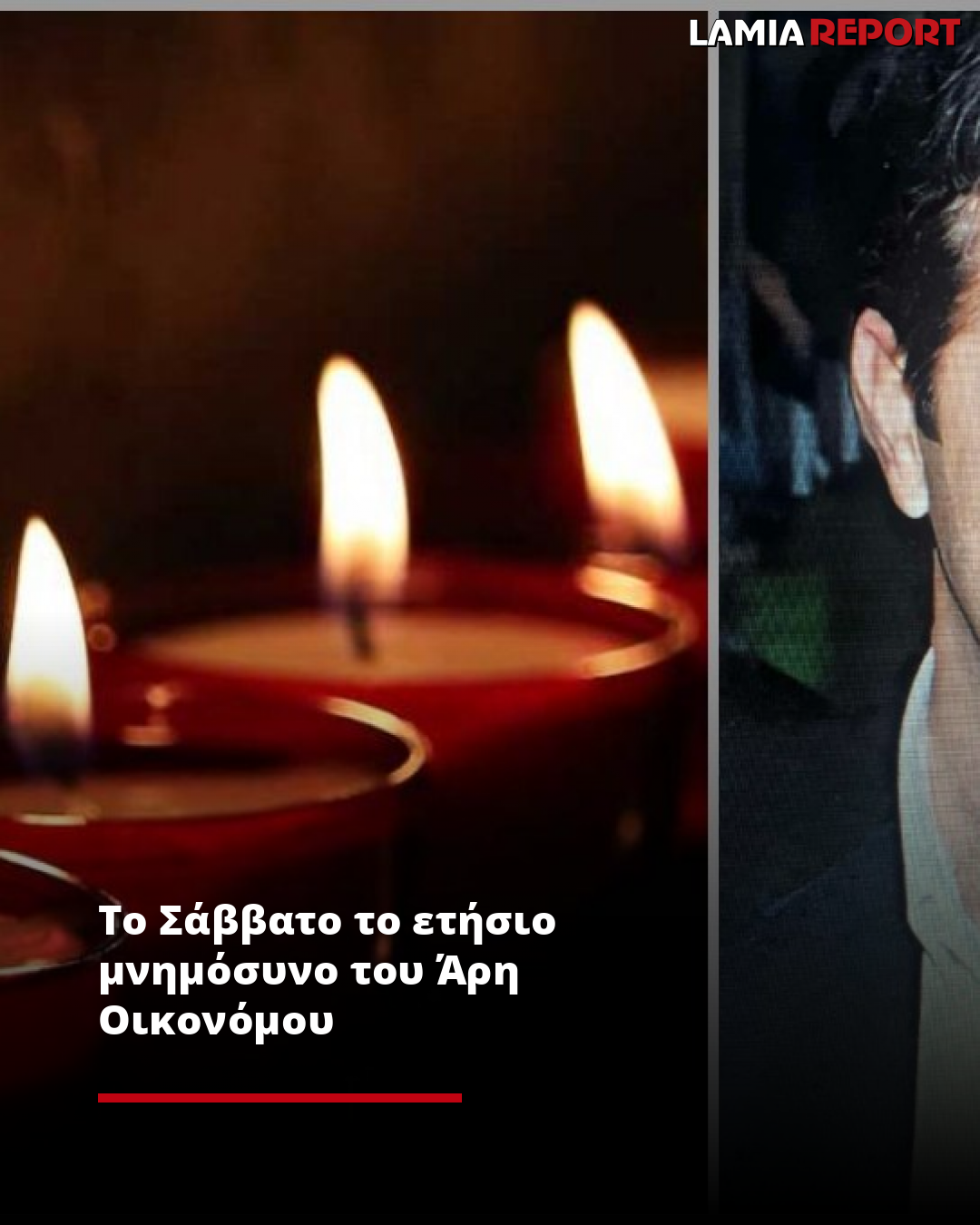Το Σάββατο 21 Δεκεμβρίου 2024 στις 09:00' το πρωί, θα τελεστεί το ετήσιο μνημόσυνο του Άρη Οικονόμου, στον Ιερό Ναό Αγίου Αθανασίου στα Γαλανέικα.