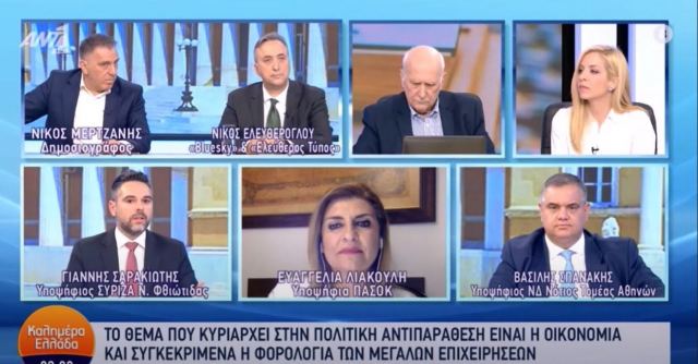 Τις θέσεις του κόμματός του για τη φορολογική πολιτική ανέπτυξε ο υποψήφιοςΒουλευτής Φθιώτιδαςτου ΣΥ.ΡΙΖ.Α.-Προοδευτική Συμμαχία Γιάννης Σαρακιώτης, κατά την παρουσία του στην εκπομπή «Καλημέρα Ελλάδα» του ΑΝΤ1, με τον Γιώργο Παπαδάκη και τη Μαρία Αναστασοπούλου.