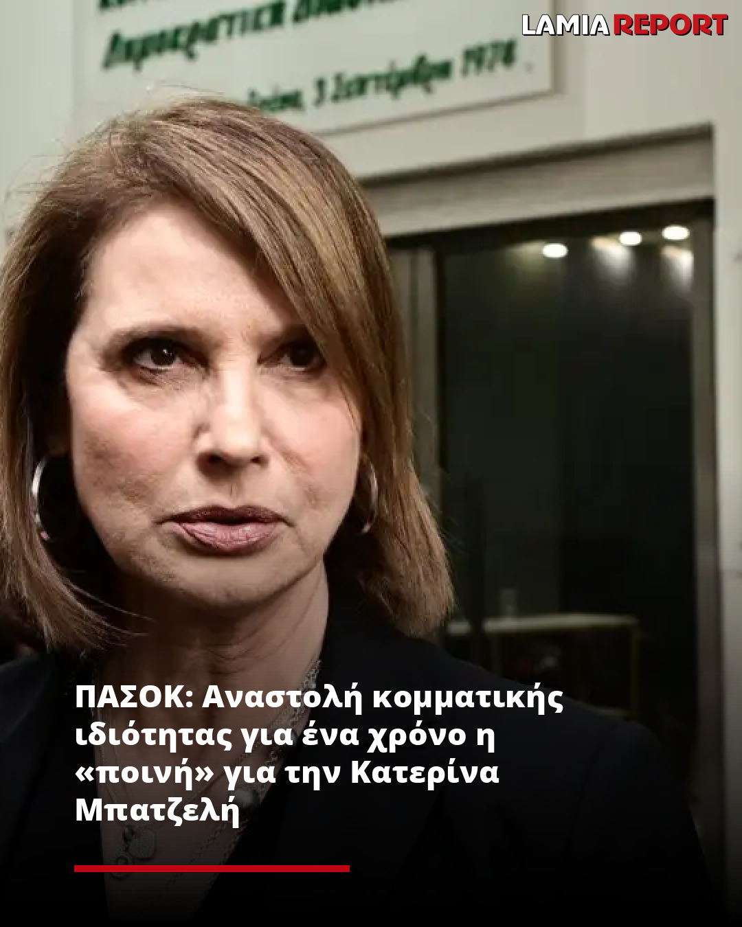 Την αναστολή της κομματικής ιδιότητας για έναν χρόνο της Κατερίνας Μπατζελή αποφάσισε η 11μελής Επιτροπή Δεοντολογίας του ΠΑΣΟΚ – Κινήματος Αλλαγής, με 8 ψήφους έναντι 3.