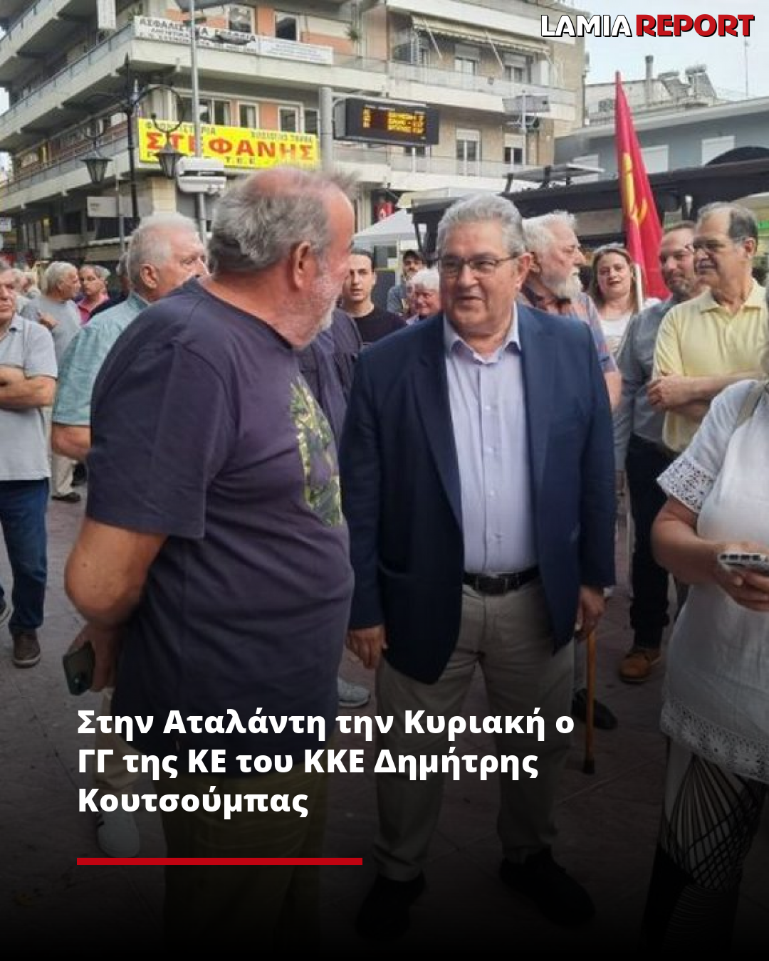 Ο ΓΓ της ΚΕ του ΚΚΕ Δημήτρης Κουτσούμπας θα παρευρεθεί την Κυριακή 10 Αυγούστου, στις 21.00 σε εκδήλωση συναυλία που διοργανώνει η ΚΟΒ Αταλάντης του ΚΚΕ, στην οποία θα τραγουδήσουν ο Δημήτρης Μπάσης και η Βίκυ Καρατζόγλου.