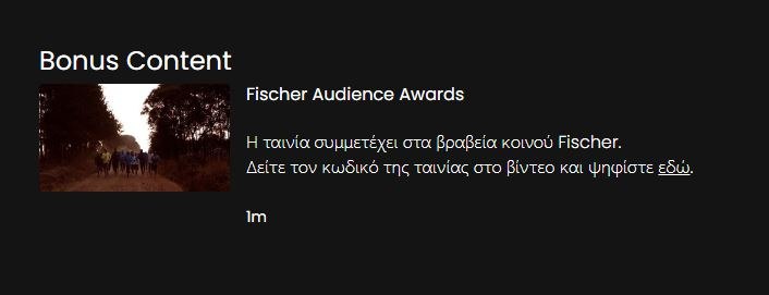 Αν σας αρέσει η ταινία, μπορείτε να την ψηφίσετε για να διεκδικήσει το βραβείο κοινού. Στο κάτω μέρος της σελίδας, όπως βλέπετε στην παρακάτω εικόνα, πατάτε στη λέξη “εδώ” και σας ανοίγει μια καρτέλα όπου βάζοντας τον κωδικό που θα δείτε την ώρα που παρακολουθείτε την ταινία, μπορείτε να την ψηφίσετε!
