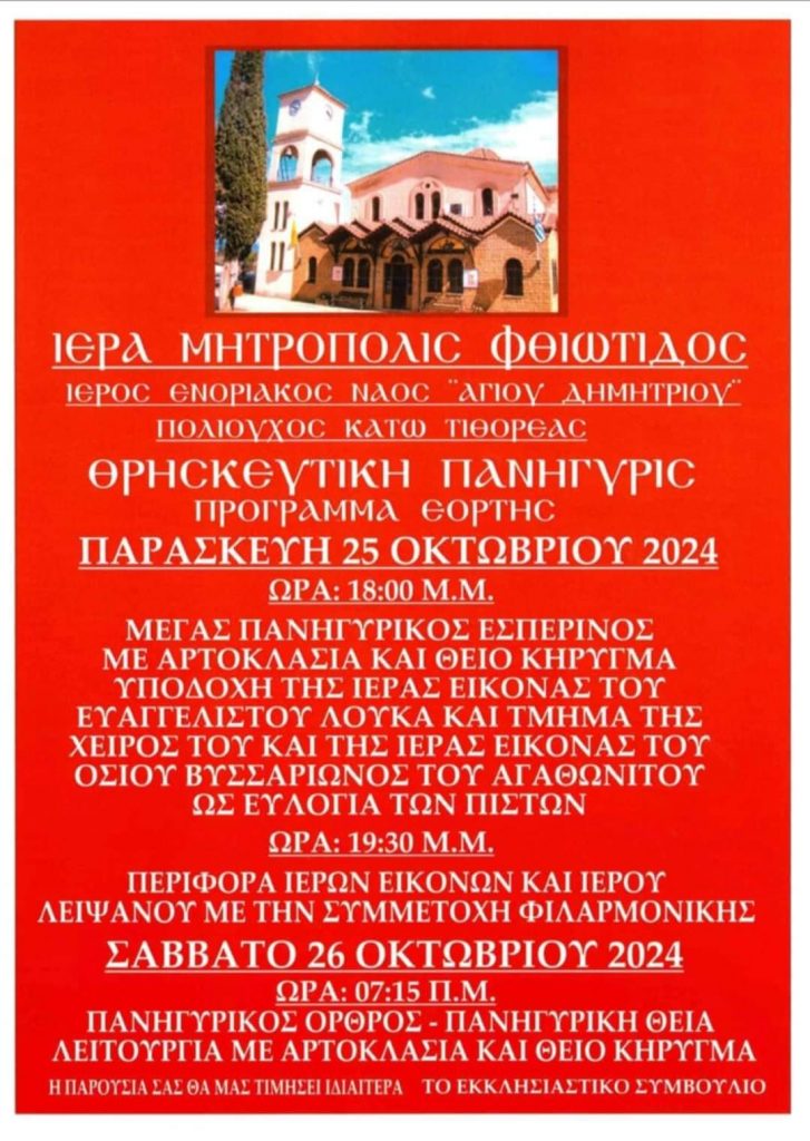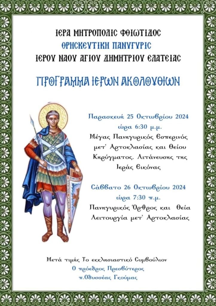 Πέραν του εορτασμού του Πολιούχου της Ελάτειας και Κάτω Τιθορέας Αγίου Μεγαλομάρτυρος Δημητρίου του Μυροβλήτου και της Εθνικής μας Επετείου, οι Σύλλογοι, οι Φορείς, οι επαγγελματίες και οι μαθητές μας έχουν φροντίσει για τη διοργάνωση σειράς δράσεων για μικρούς και μεγάλους.