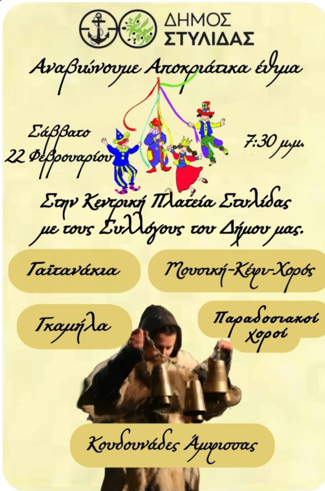 Ο Δήμος Στυλίδας γιορτάζει την Αποκριά 2025 με ένα πλούσιο πρόγραμμα εκδηλώσεων που θα αναβιώσουν την παράδοση και θα σας γεμίσουν με χαρά και κέφι.