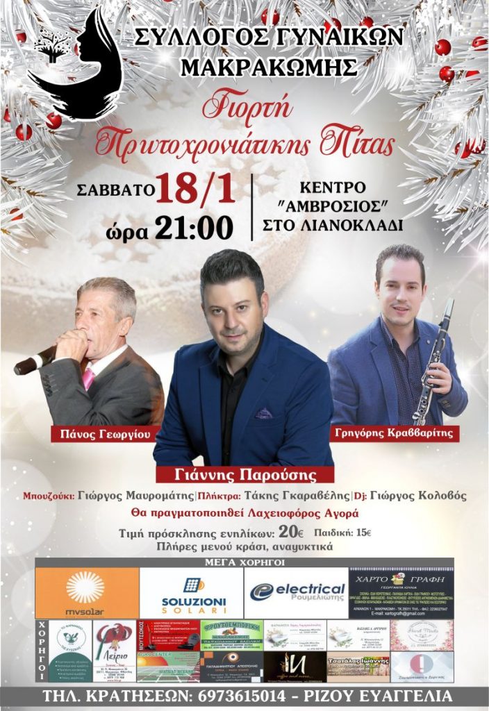 Ο Σύλλογος Γυναικών Μακρακώμης κόβει την Πρωτοχρονιάτικη πίτα του το Σάββατο 18 Ιανουαρίου 2025.
