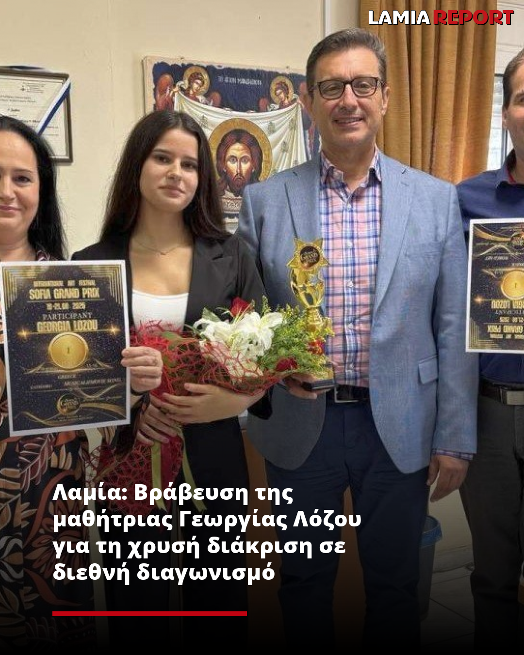 Λαμία: Βράβευση της μαθήτριας Γεωργίας Λόζου για τη χρυσή διάκριση σε διεθνή διαγωνισμό