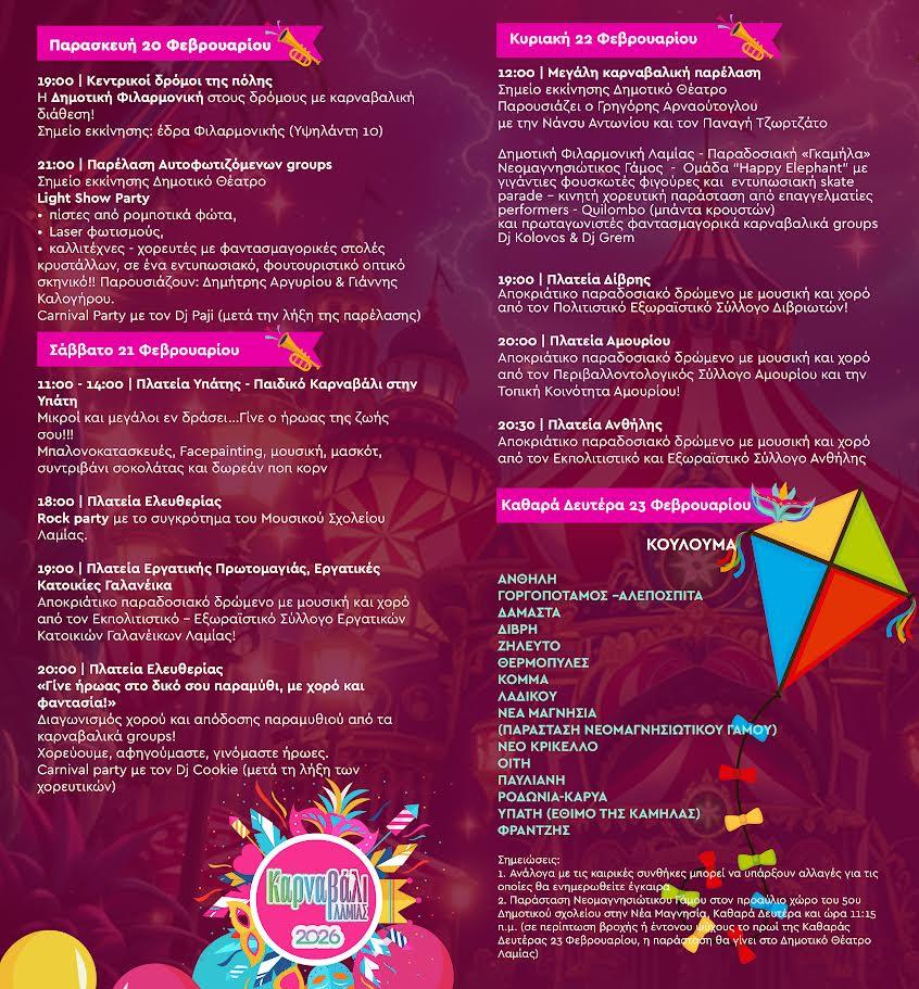 ΚΑΡΝΑΒΑΛΙ ΛΑΜΙΑΣ 2026 - ΠΡΟΓΡΑΜΜΑ