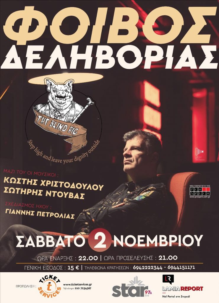 Το "The Blind Pig" θα φιλοξενήσει τον έντεχνο τραγουδιστή, Φοίβο Δεληβοριά, για μια μοναδική live παράσταση.