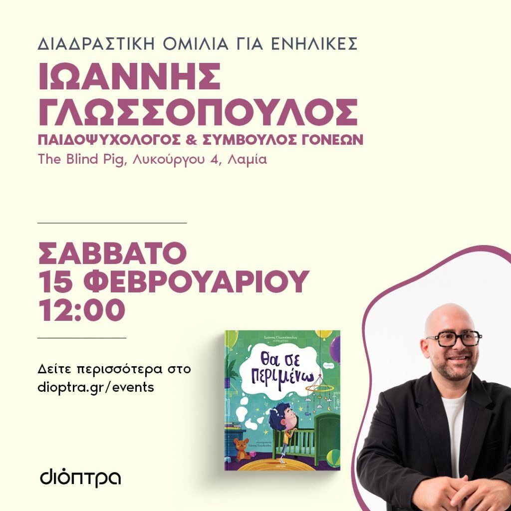 Αύριο, Σάββατο 15 Φεβρουαρίου, στις 12:00, στο The Blind Pig, ο Ιωάννης Γλωσσόπουλος θα πραγματοποιήσει μία διαδραστική ομιλία, η οποία απευθύνεται σε γονείς και θα εστιάσει σε θέματα θετικής διαπαιδαγώγησης και συναισθηματικής αγωγής.