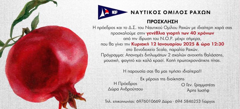 Ο Ναυτικός Όμιλος Ραχών συμπληρώνει 40 χρόνια λειτουργίας, όντας ο 1ος στη Στερεά Ελλάδα και ένας από τους σημαντικότερους στην Ελλάδα.