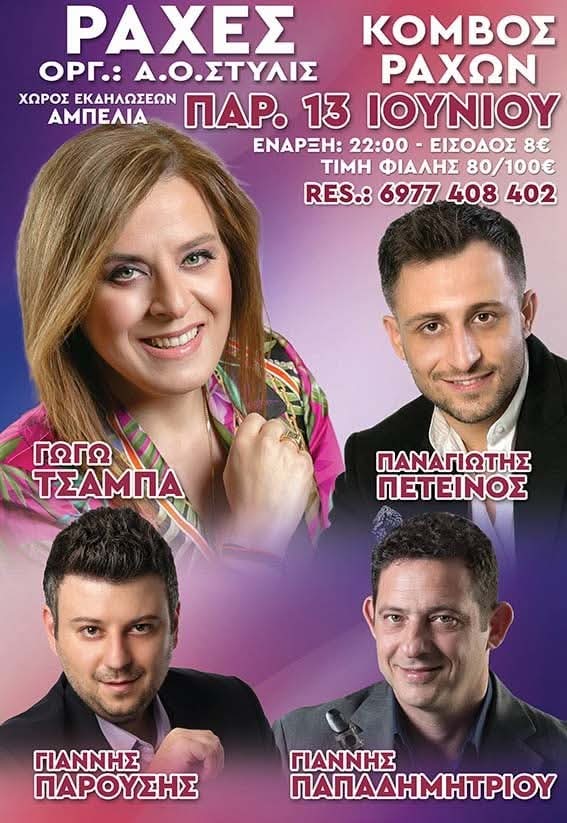Η εκδήλωση θα γίνει την Παρασκευή 13 Ιουνίου 2025, στον πολυχώρο "Αμπέλια", στον κόμβο των Ραχών και θα ξεκινήσει στις 10:00' το βράδυ.