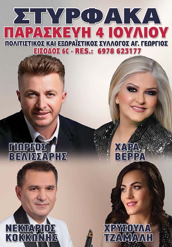Την Παρασκευή (4/7) διασκεδάζουμε στη Στύρφακα με Χαρά Βέρρα και Γιώργο Βελλισάρη!