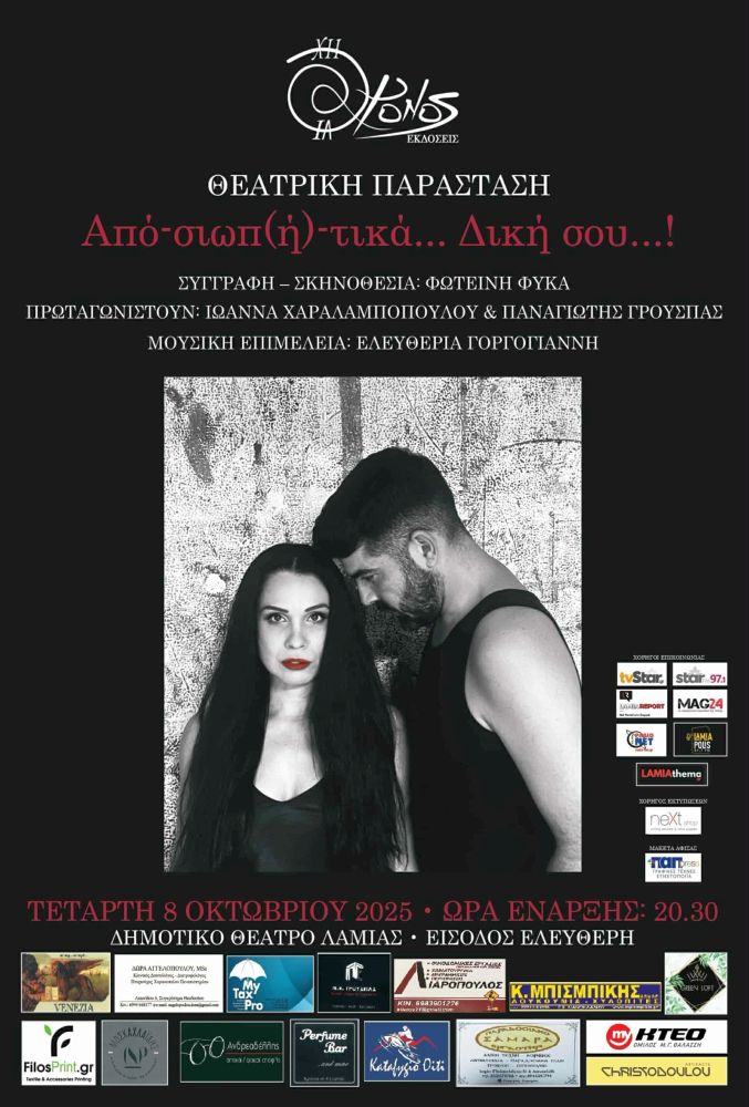 Η παράσταση θα ανέβει στο Δημοτικό Θέατρο Λαμίας στις 8 Οκτωβρίου και ώρα 20:30.