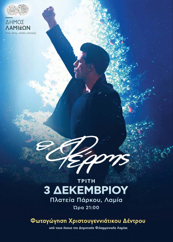 Την Τρίτη 3 Δεκεμβρίου 2024, στις 21:00 η πλατεία Πάρκου θα γεμίσει λάμψη, χαρά και μουσική, με τη φωταγώγηση του Χριστουγεννιάτικου Δέντρου υπό τους ήχους της Δημοτικής Φιλαρμονικής Λαμίας, ενώ η βραδιά θα κορυφωθεί με τη μοναδική συναυλία του αγαπημένου καλλιτέχνη Θοδωρή Φέρρη, που θα μας ταξιδέψει με τις επιτυχίες και την ξεχωριστή φωνή του.