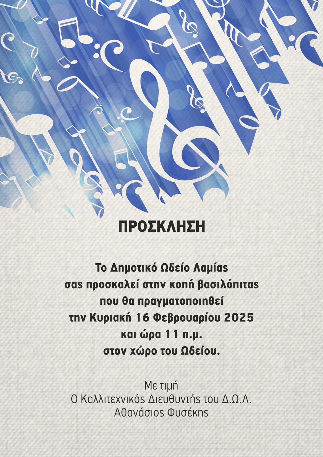 Το Δημοτικό Ωδείο Λαμίας έχει την Κυριακή 16 Φεβρουαρίου 2025, την καθιερωμένη κοπή της Αγιοβασιλόπιτάς του.