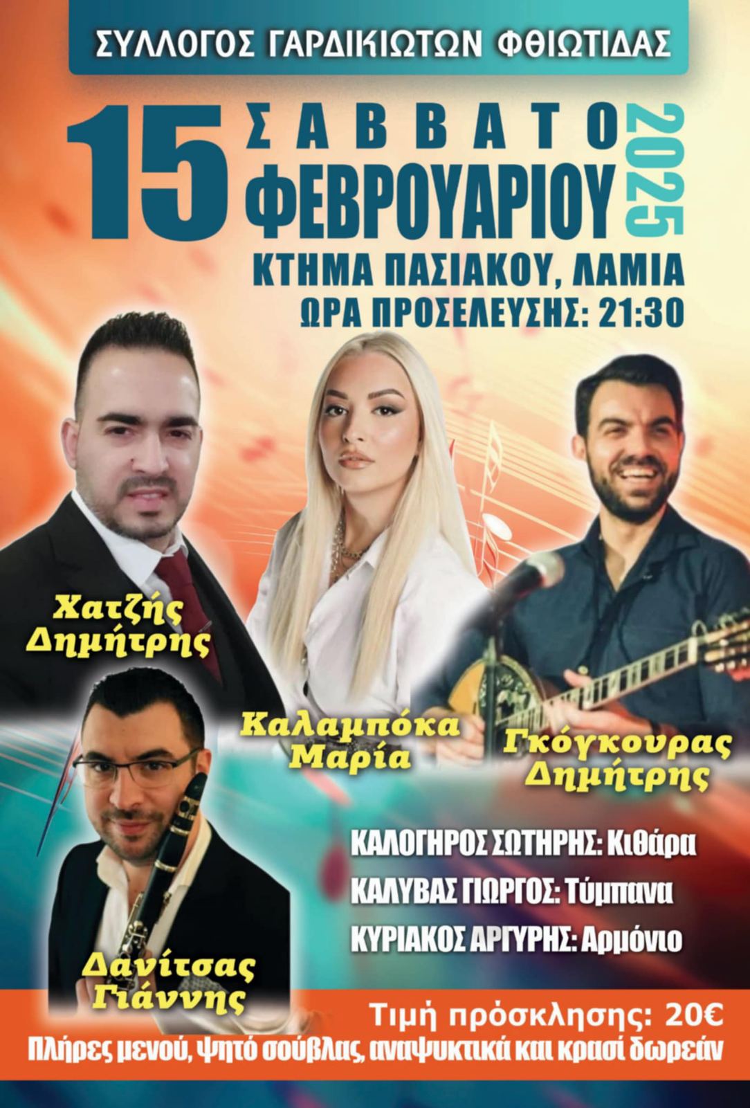 Ο Σύλλογος Γαρδικιωτών Φθιώτιδας διοργανώνει την ετήσια χοροεσπερίδα του.