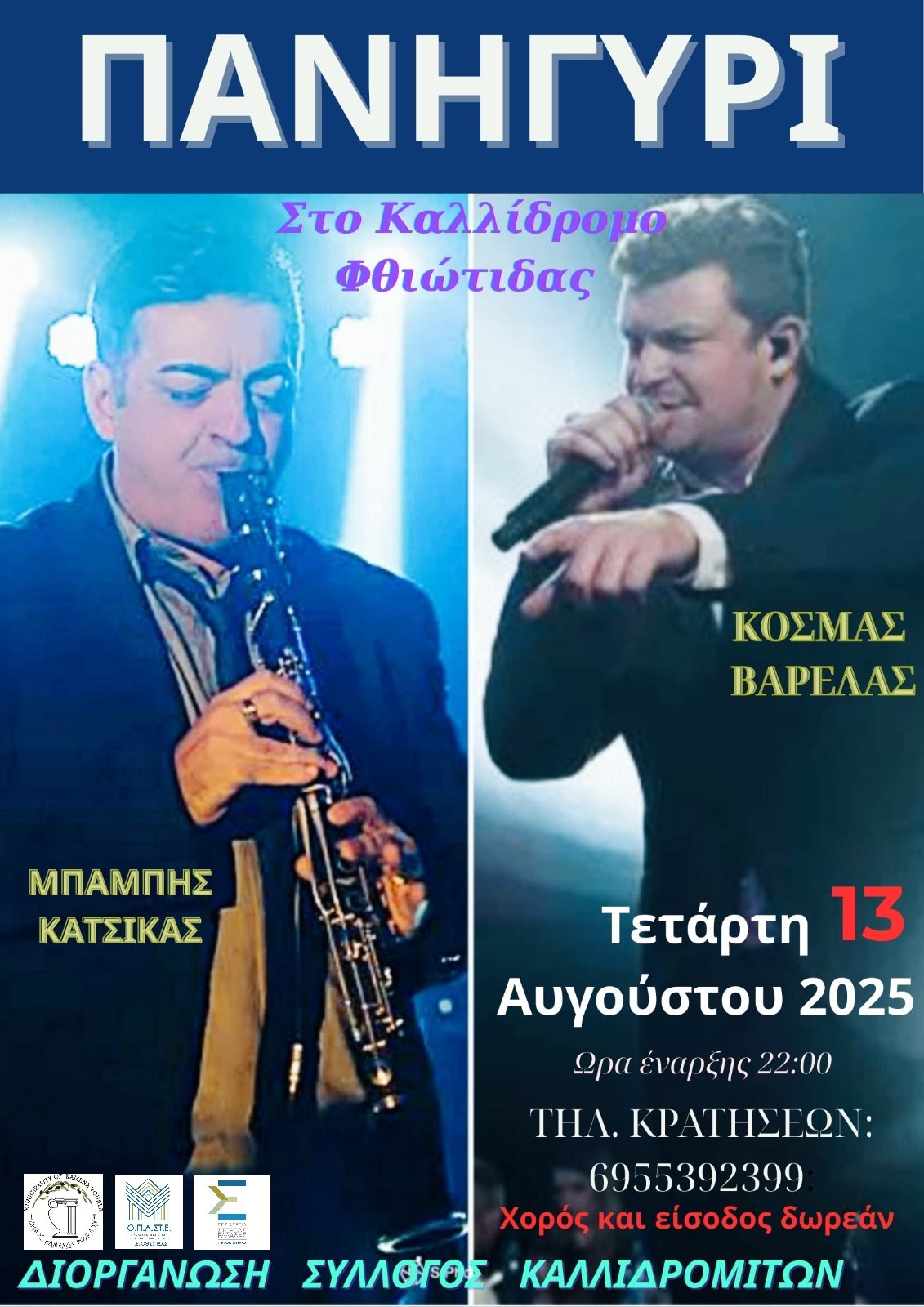 Ο Σύλλογος Καλλιδρομιτών σας προσκαλεί σε μια σε μία άκρως διασκεδαστική βραδιά. Πάρτε την παρέα σας και ελάτε να χορέψουμε!
