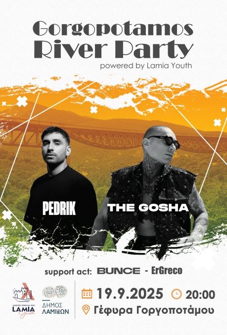 Το Συμβούλιο Νέων του Δήμου Λαμιέων διοργανώνει στις 19 Σεπτεμβρίου 2025 και ώρα 20:00 μ.μ. το πρώτο Gorgopotamos river party powered by Lamia Youth, στον πεζόδρομο του Γοργοποτάμου.