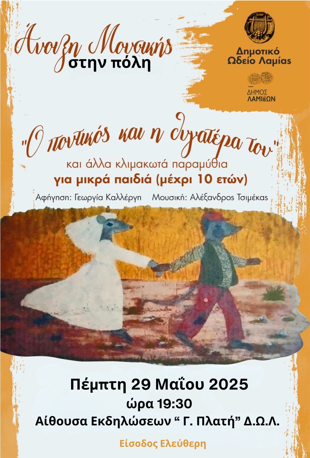 Άνοιξη Μουσικής στην πόλη: «Ο ποντικός και η θυγατέρα του» στο Δημοτικό Ωδείο Λαμίας