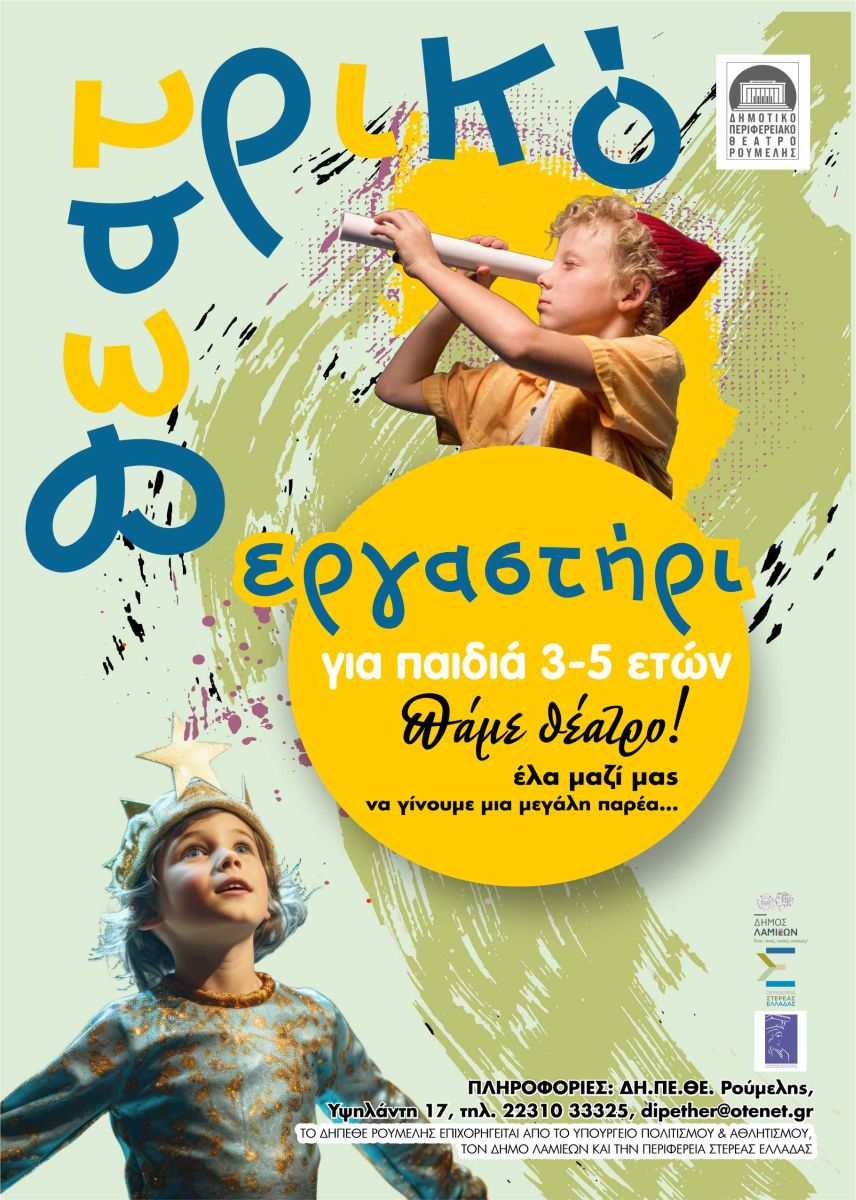 Το ΔΗΠΕΘΕ Ρούμελης, μετά την ιδιαίτερα επιτυχημένη πρώτη χρονιά λειτουργίας του θεατρικού εργαστηρίου για νήπια 3 - 5 ετών, συνεχίζει και φέτος για δεύτερη χρονιά με δασκάλα την Βάσια Γκουζούνη, στον ειδικά διαμορφωμένο χώρο του, στο νεοκλασικό που βρίσκεται στη διασταύρωση των οδών Αριστοτέλους και Ησαΐα, στην Πλατεία Λαού.