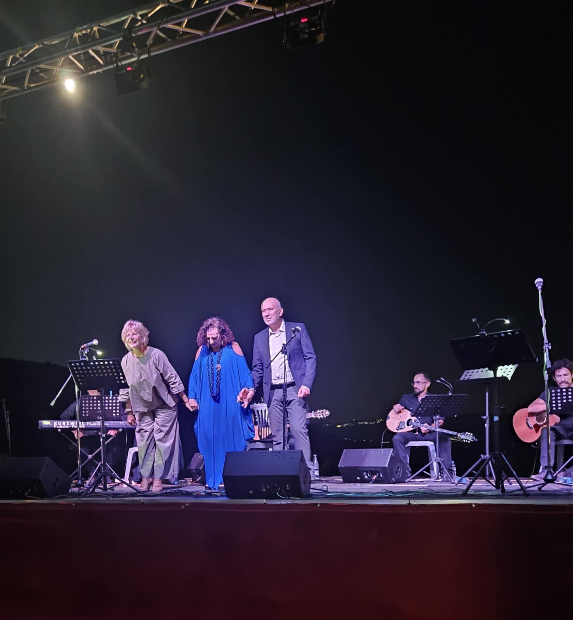 Σε αυτόν τον ιερό χώρο, όπου η ιστορία συναντά το φως, το κοινό είχε την ευκαιρία να απολαύσει μια μελωδική βραδιά αφιερωμένη σε δύο κορυφαίους πυλώνες του ελληνικού πολιτισμού: τον Μάρκο Βαμβακάρη και τον Μίκη Θεοδωράκη. Δύο σπουδαίοι δημιουργοί που έδωσαν φωνή στον λαό και ψυχή στη μουσική μας κληρονομιά.