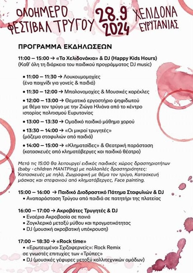 Το Σάββατο 28 Σεπτεμβρίου στις 11:00' το πρωί θα ξεκινήσει το ολοήμερο Φεστιβάλ Τρύγου.