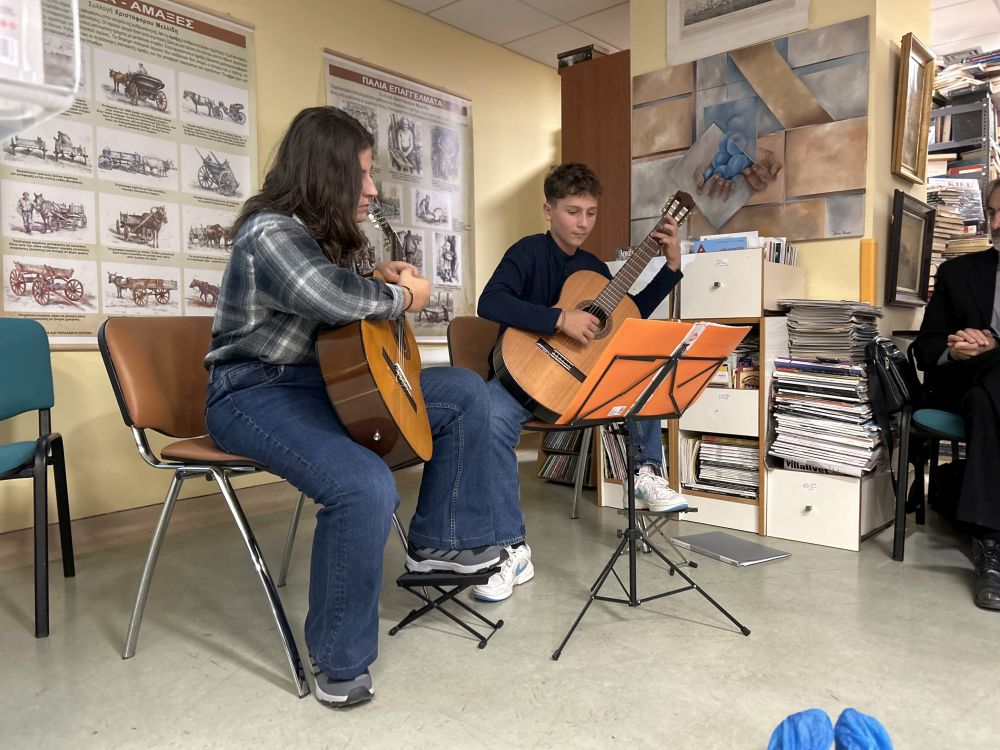 Τη μουσική έντυσε με κιθάρα ο δάσκαλος κ. Δημήτρης Τσούτσικας, μαζί με τους μαθητές του Άννα Μαρία Αντωνίου και Φίλιππο Τσατσαρώνη, σε μουσική σύνθεση του κ. Δημητρίου Κοντογιάννη.